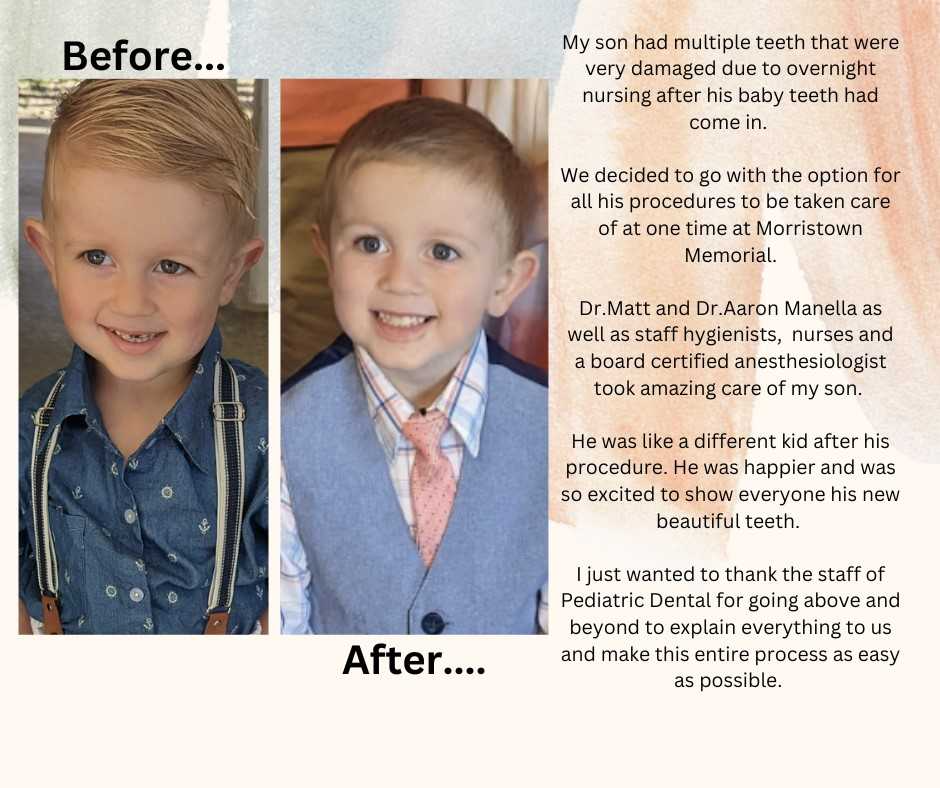 At Pediatric Dental Associates of Randolph, parents have the option of having their child’s dental treatment with sedation performed either in the comfort of our state-of-the-art office or at Morristown Medical Center. In office, our pediatric dentists and team work alongside specially trained pediatric anesthesiologist Dr. Gordon Barnes. There is no more talented team to trust your child’s smile to.